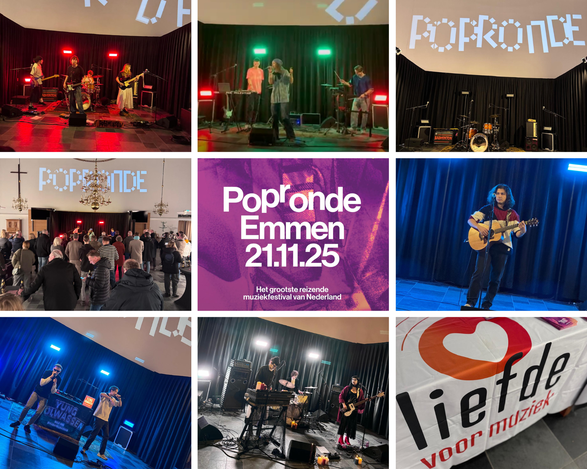 Op 21 november organiseerden en hosten we een collectief poppodium voor de Popronde 2025 in Emmen. Samen met De Keet Emmen, Zo34, Studiestad Emmen en Popronde Emmen hebben we een gevarieerd muziekaanbod geprogrammeerd. Vanaf 17.00 uur traden op: Mazis, Ida, Badminton, Yung Volwassen en Dear Omen.