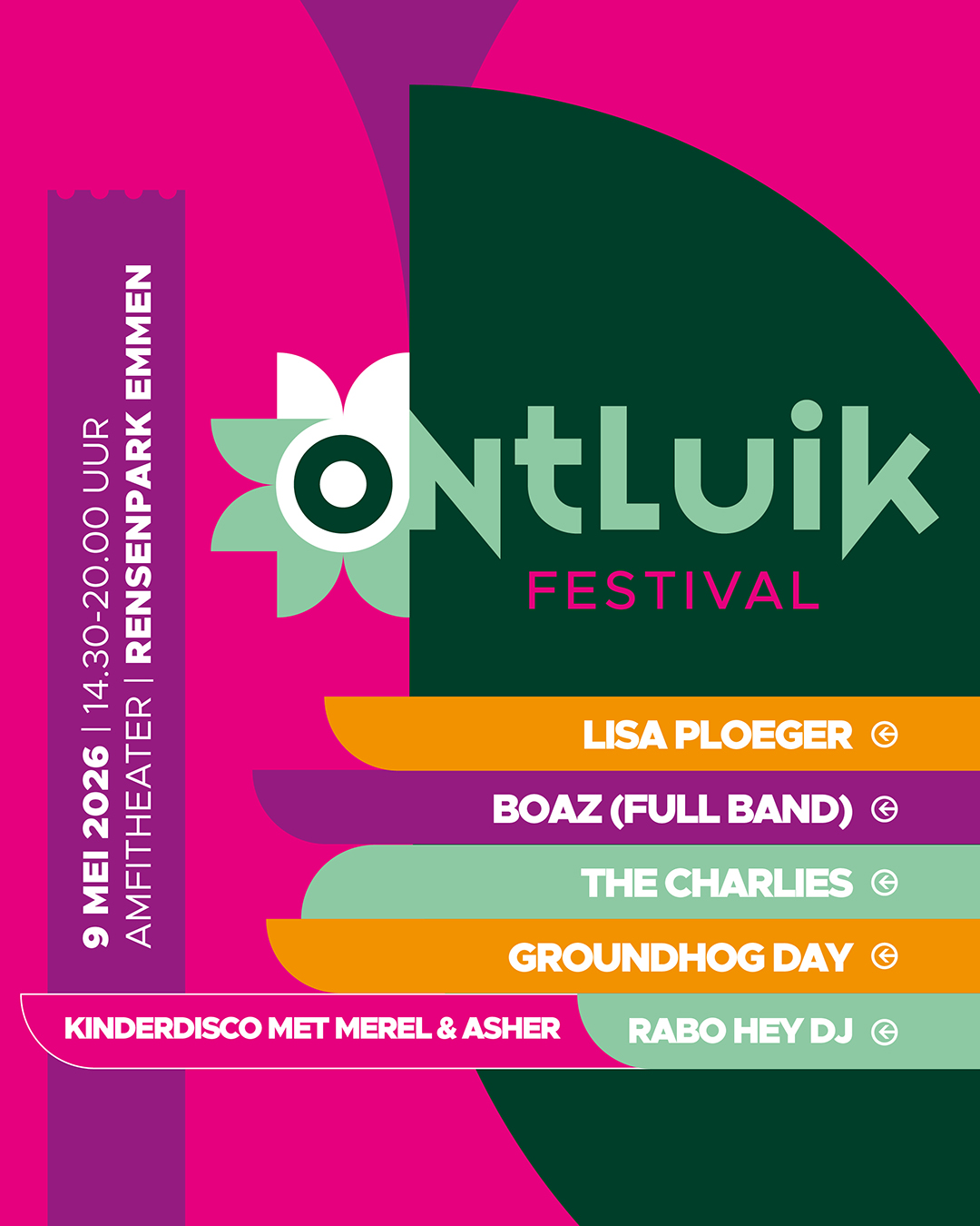 De voorbereidingen voor festival Ontluik zijn gaande! Op 9 mei organiseren we i.s.m. st. JAR het gratis toegankelijke festival Ontluik in het amfitheater van het Rensenpark in Emmen. SLVM produceert de line-up, de activiteiten, verzorgt social media, schrijft het draaiboek en denkt mee over de begroting.